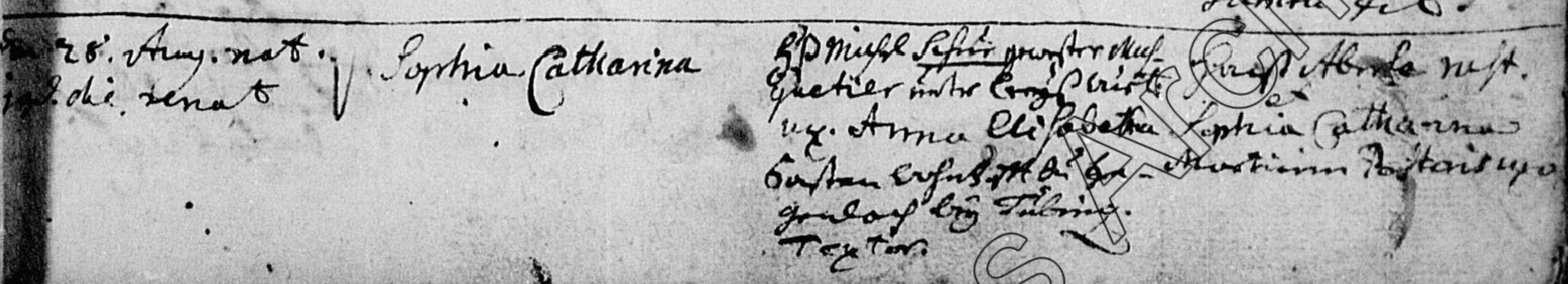 | Vater | Hans Michel Schur, gewesener Musketier, württembergisches Kreisregiment, Weber, von einem Ort (Name nicht zu lesen) bei Tübingen |